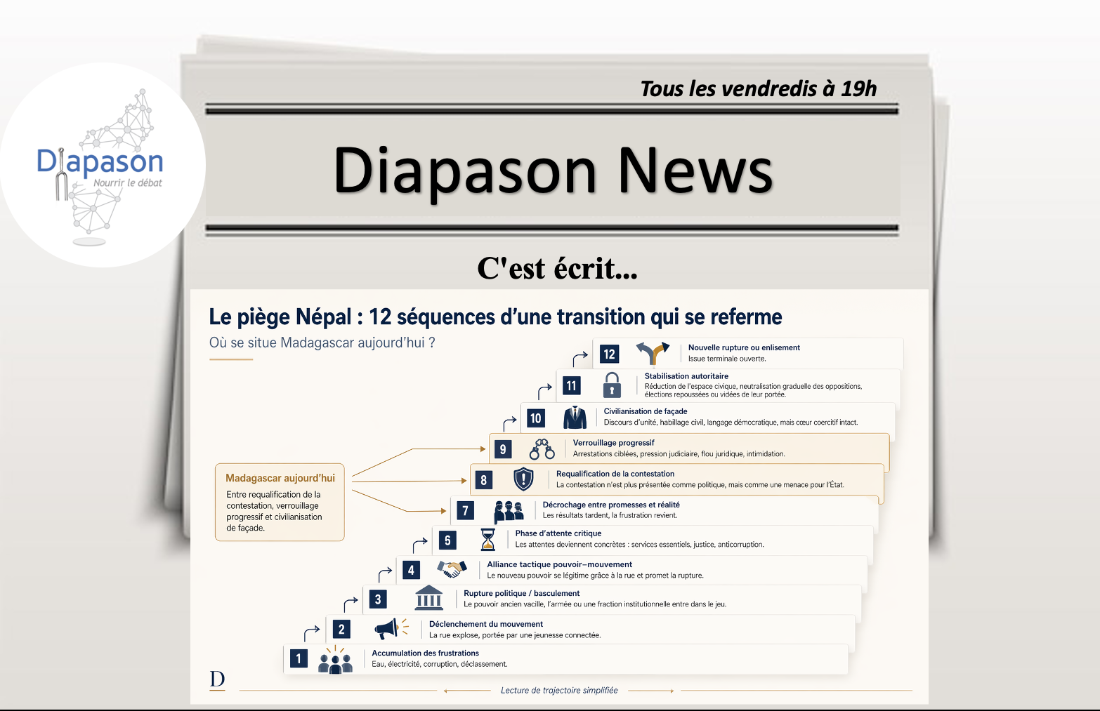 Diapason est un « think tank » qui veut poser des questions, nourrir le débat, valoriser les initiatives et favoriser l’innovation socio-économique et politique pour le développement de Madagascar