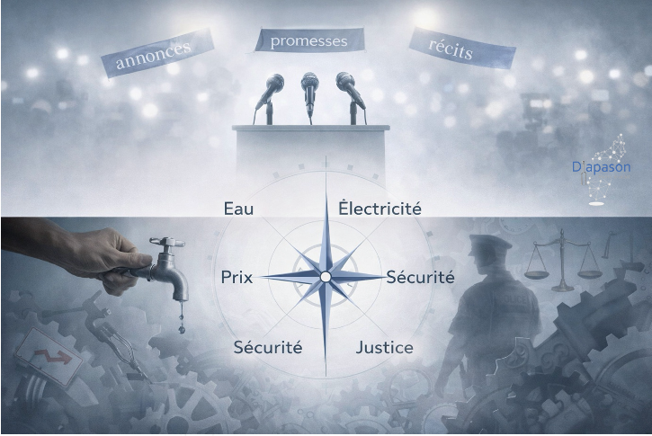 La différence ne se lit pas dans les discours. Elle se voit dans les faits. Dans la capacité à faire fonctionner les mécanismes qui transforment une décision en service public. Dans la transparence des chiffres. Dans la manière de gérer l’eau, l’électricité, les prix, la sécurité, la justice. Là se joue la crédibilité. Là se mesure le basculement.