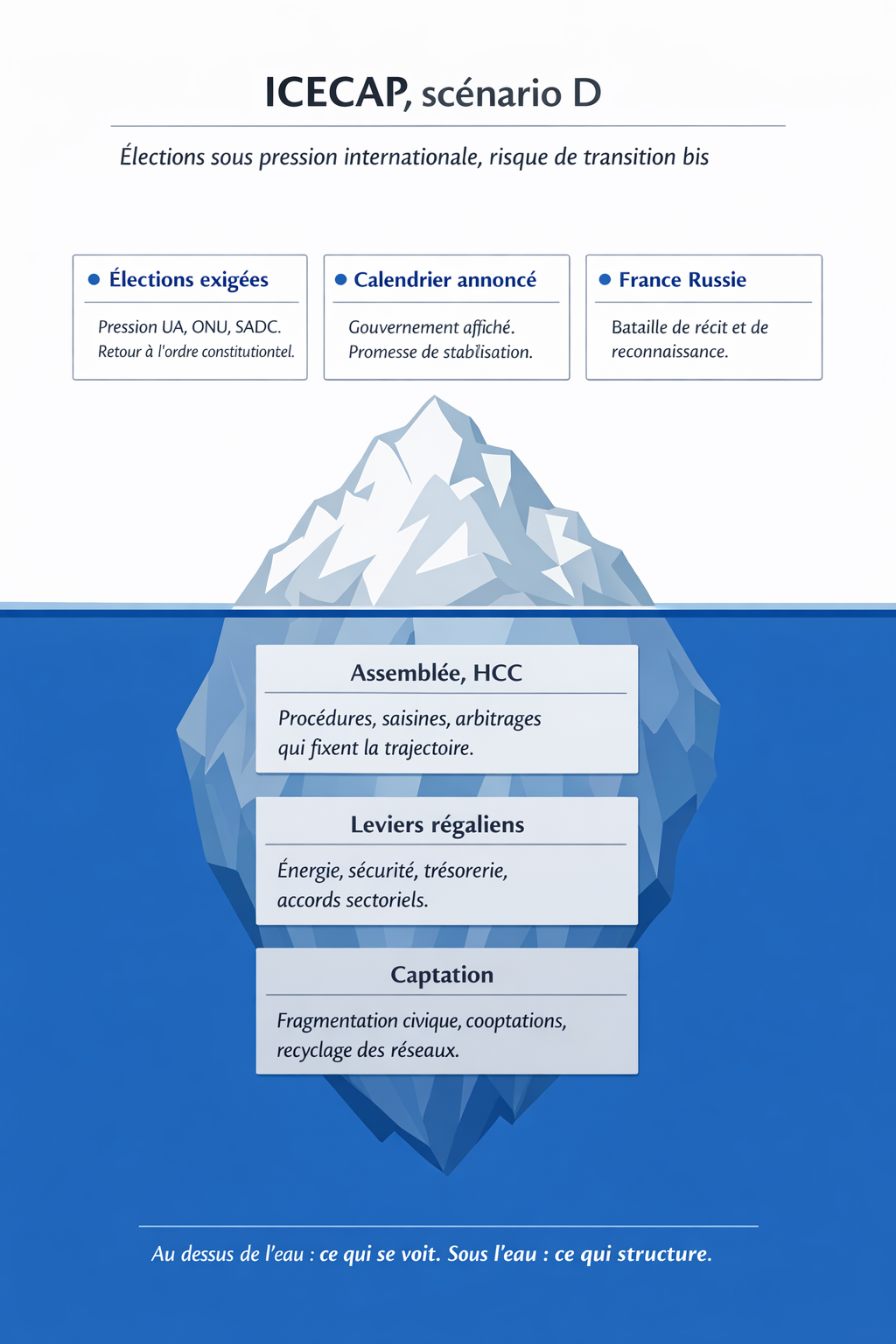 Parce que le pouvoir actuel est juridiquement encadré mais politiquement contraint, la transition a créé un espace de vulnérabilité où l’essentiel se décide souvent en dehors de la scène officielle. Dans ce type de moment, l’enjeu n’est pas seulement de savoir qui gouverne, mais qui fixe la trajectoire. Le calendrier électoral, les conditions de sécurité, l’accès à l’énergie, les accords économiques, le contrôle du récit, la reconnaissance internationale. Ce sont ces paramètres qui rendent une transition réversible ou irréversible.