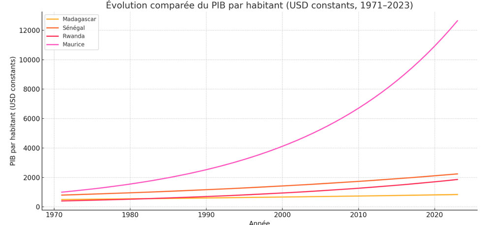 Graphique : Évolution comparée du PIB par habitant (1971–2023)