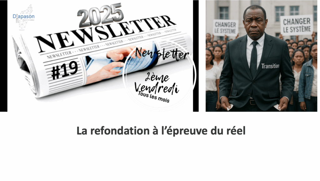 Date : 07/10/25 Résumé exécutif Le dossier L’Afrique et ses transitions explore la prolifération des transitions politiques sur le continent depuis 2020. Il montre que, loin d’être de simples épisodes de rétablissement institutionnel, ces transitions traduisent un bouleversement profond du rapport entre pouvoir, légitimité et souveraineté. Du Sahel à l’océan Indien, la même séquence se répète : un régime civil discrédité, une intervention militaire présentée comme un acte de salut public, puis une refondation promise qui s’installe dans la durée. L’étude s’appuie sur les cas du Gabon, de la Guinée, du Mali, du Niger et du Burkina Faso, avant d’analyser la situation de Madagascar depuis octobre 2025. Dans chacun de ces pays, la transition s’ouvre sur un discours de rupture et se referme sur une consolidation du pouvoir. La logique du provisoire devient un système. Cette dérive, que Diapason nomme piège Népal, suit neuf étapes précises, de l’euphorie populaire à la normalisation de l’exception. À Madagascar, la transition actuelle reproduit les mêmes signaux : militarisation du gouvernement, absence de clause de non éligibilité, glissement du calendrier et réduction de l’espace civique. La probabilité de captation institutionnelle durable est évaluée à quatre-vingt-dix pour cent. Pourtant, des leviers existent. Les exemples du Portugal, du Ghana, de l’Indonésie ou de la Gambie montrent qu’une transition peut devenir refondation si elle s’appuie sur la transparence, la limitation du pouvoir et la lutte effective contre la corruption. Le dossier propose cinq mesures clés pour briser le cycle : récupérer les avoirs, créer une agence anticorruption à dents, rendre l’État transparent, sécuriser les marchés publics et installer une supervision technique limitée. L’enjeu n’est plus de proclamer la refondation, mais de la prouver par des actes. Une transition réussie se mesure à la qualité de ses règles, non à la durée de ses promesses. Télécharger l’article : Ici 🗞