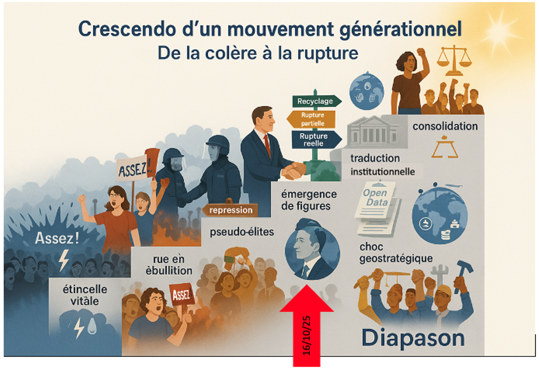 La Gen Z a montré qu’elle savait soulever un pays sans promesse de miracle. Elle doit maintenant imposer ses valeurs et sa feuille de route. Le temps de la rue s’achève si le temps du droit et de l’organisation ne prend pas le relais. Se préparer à gouverner, c’est protéger les vies aujourd’hui, fixer des règles lisibles pour demain et neutraliser les tentations de captation. C’est refuser de subir une restauration de l’ancien système maquillée en ordre et assumer la responsabilité d’une rupture ordonnée.