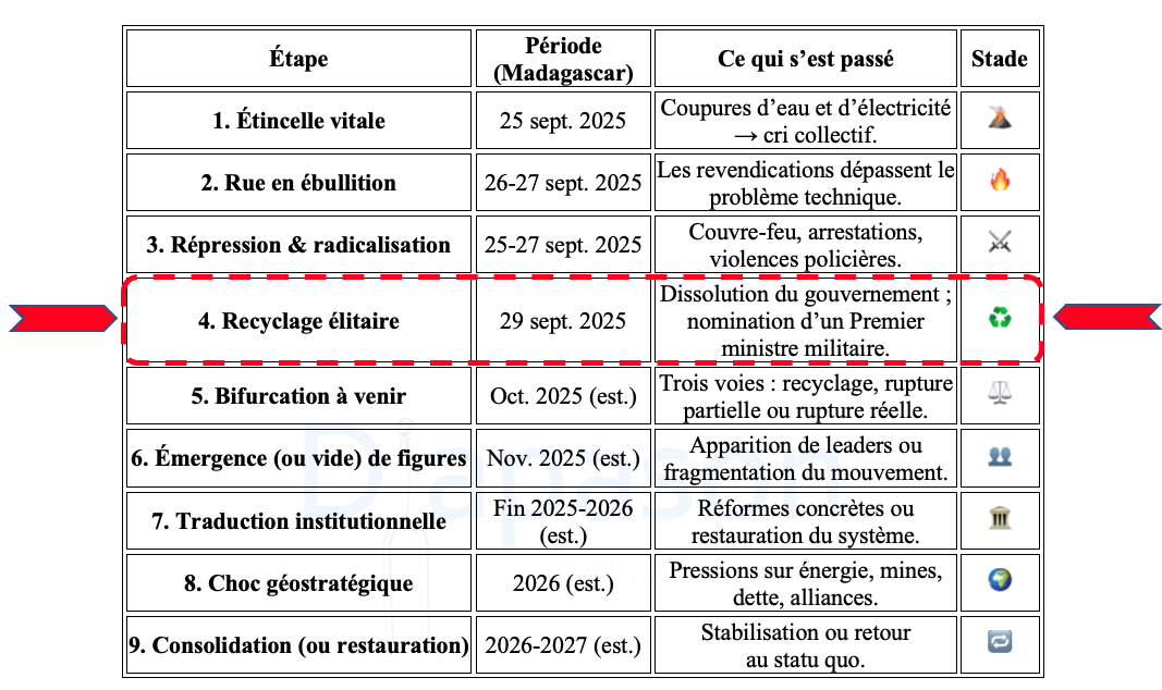 La situation malgache se situe au stade 4 : Le recyclage élitaire.