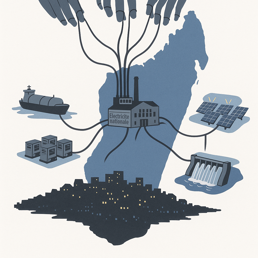 À Madagascar, chaque débat sur la JIRAMA (Jiro sy Rano Malagasy) remet la même réalité au jour. Derrière les coupures d’électricité, les dettes et les hausses de tarifs se cache une dépendance structurelle d’un État fragilisé vis-à-vis de quelques groupes privés qui contrôlent l’accès à l’énergie. Quand une minorité d’acteurs tient le carburant, les groupes électrogènes, une partie du solaire et de l’hydraulique, c’est toute l’économie qui se retrouve prise dans un étau.