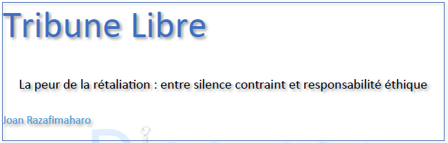 Dans des contextes institutionnels fragiles comme celui de Madagascar, la peur de la rétaliation constitue un facteur structurant des pratiques professionnelles, en particulier dans les domaines techniques, administratifs ou artistiques. Elle ne relève pas d’une perception individuelle isolée, mais d’un phénomène systémique, alimenté par des rapports de pouvoir opaques, des réseaux d’allégeance informels, et un climat de défiance généralisée. Elle s’exprime dans le silence contraint, la prudence de façade, l’autocensure intériorisée.