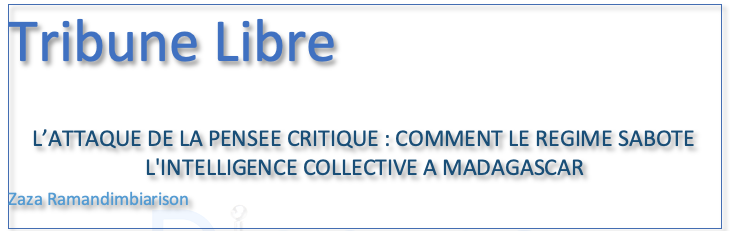 Ainsi, l’intelligence collective de Madagascar est sous pression, mais le réveil des consciences reste possible. Seule une population instruite et engagée, capable de contester les discours dominants et d’affirmer ses droits, pourra restaurer la pensée critique et bâtir une société résiliente et démocratique. L’avenir de Madagascar dépend de notre capacité à résister à cette attaque insidieuse et à revendiquer notre droit à la vérité et à une gouvernance éclairée.