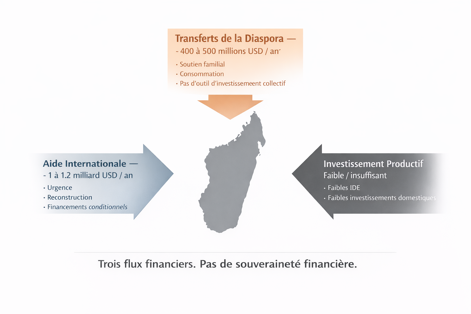 En résumé : même si les remittances représentent une source de financement significative pour Madagascar, leur poids économique reste modéré comparé à celui des flux d’aide internationale ou à la capacité réelle d’investissement que pourrait mobiliser une banque de la diaspora ou des instruments de financement dédiés.