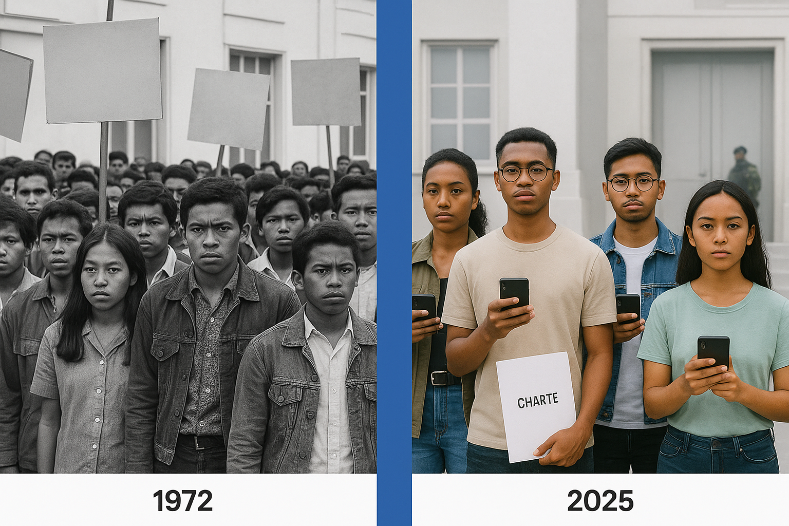 L’année 1972 hante la mémoire nationale. Une jeunesse étudiante galvanisée, des cortèges massifs, une répression meurtrière, puis la chute de l’ordre ancien. Le président Tsiranana cède, le général Ramanantsoa prend la main, un référendum entérine une transition et ouvre la voie à une nouvelle République. Pourtant le système profond ne bascule pas. Les centres de pouvoir se recomposent, l’État se recentre autour d’un appareil qui parle de révolution et de modernisation sans déplacer les rapports de force au cœur de la société. C’est le paradoxe des victoires spectaculaires qui n’accouchent pas d’une refondation. Le parallèle avec la séquence actuelle n’est pas un effet de style. La dynamique de rue a fissuré la façade, l’institution militaire a refermé la porte et a repris l’agenda. Si la jeunesse ne s’engage pas en profondeur dans la politique réelle, si elle ne transforme pas son énergie morale en capacité d’alliance, de procédure et d’exécution, alors ce moment deviendra un sursaut de plus dans la chronologie malgache. Un temps fort, puis un reflux. Le pays a déjà connu ces vagues. En 1972, en 1991, en 2002, en 2009, chaque crise a renversé des hommes sans déplacer durablement l’architecture du pouvoir. Depuis le premier jour du mouvement de la Génération Z, les étapes étaient lisibles comme un crescendo. L’alerte sociale autour de l’eau et de l’électricité. La massification des cortèges. La répression qui transforme la revendication en cause morale. La délégitimation accélérée du pouvoir. L’entrée des appareils. La bascule d’unités d’élite. La recherche d’une issue par le haut. La nomination qui rassure l’ordre plus qu’elle ne répond à la demande. Enfin la normalisation sans réforme. Ce script n’est pas une fatalité. Il indique le prix à payer pour sortir du cycle. Passer du cri à la fabrique des règles. Apprendre la grammaire du pouvoir. Sinon, 1972 restera le miroir de 2025.