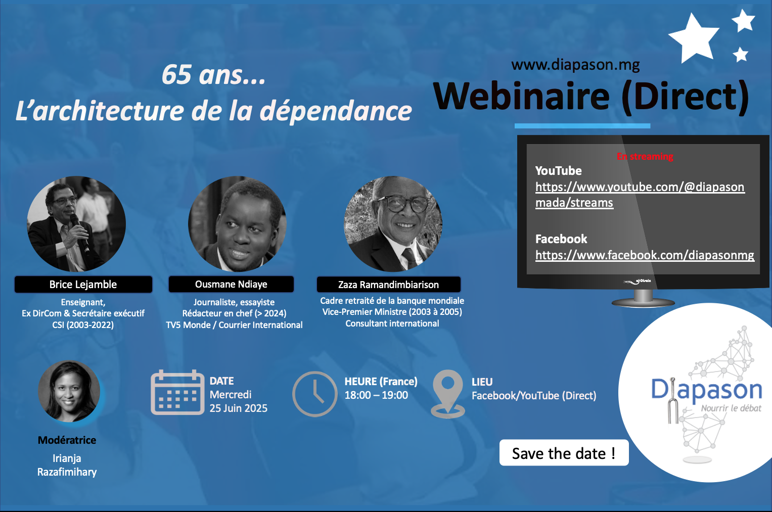 - YouTube : https://www.youtube.com/@diapasonmada/streams